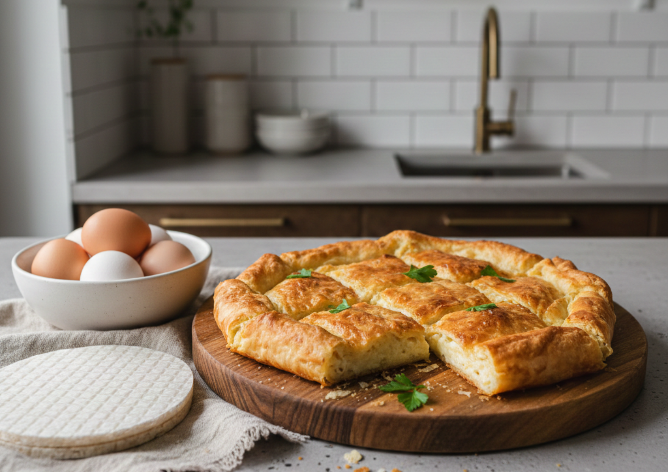 This patty with cottage cheese and rice crusts is a balanced, high-protein interpretation of the classic Bulgarian recipe, suitable for both breakfast and main meal. Using rice crusts instead of traditional pasta crusts reduces fat content and improves glycemic response after a meal. Skimmed cottage cheese is an excellent source of complete protein and calcium, which support muscle function and bone health. Eggs contribute all the essential amino acids and choline, while yogurt provides probiotics and improves the texture of the filling. The minimal amount of olive oil provides the necessary fats without the excess load, making this patty suitable for weight control, insulin resistance and active daily routines.