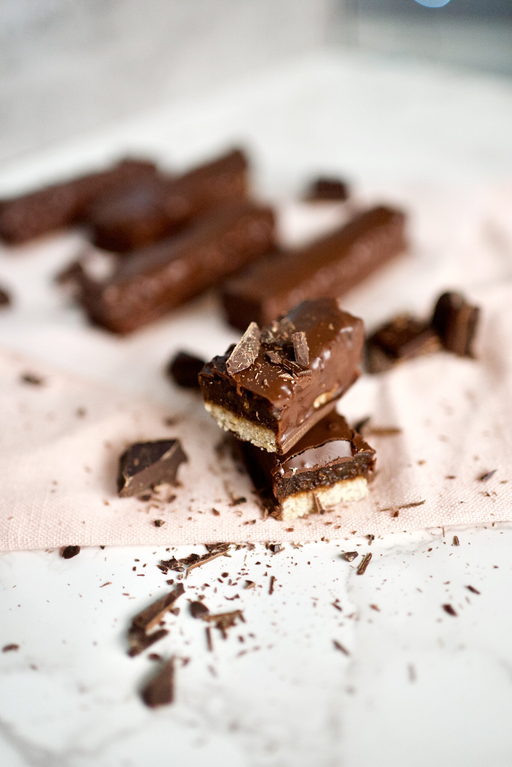 4. Нарежете барчетата и ги потопете в разтопения шоколад; след което ги оставете да стегнат на хладно.