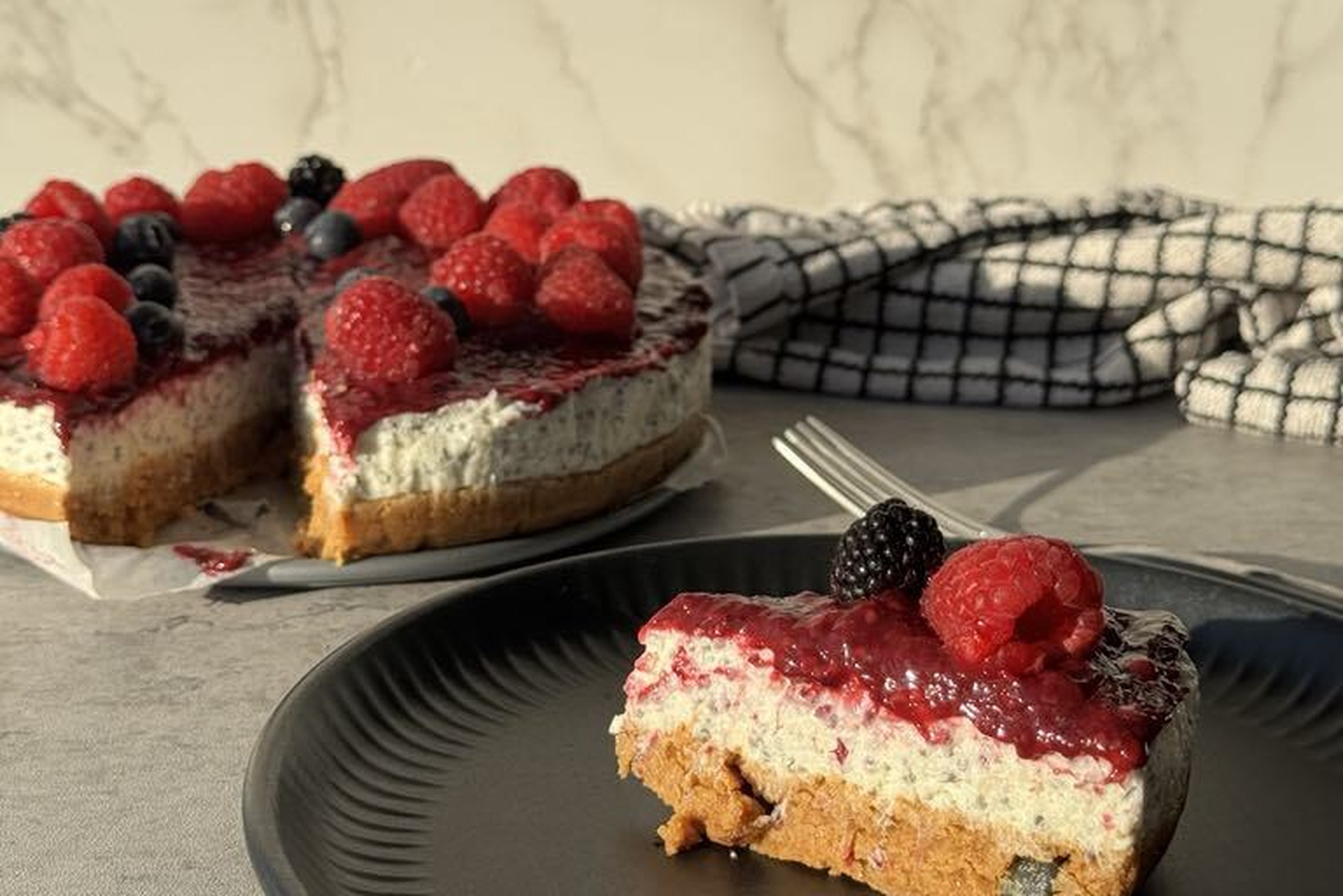Този чийзкейк без печене е вкусно съчетание от бисквитен блат, лек и пухкав крем с нежен ванилов аромат и плодова свежест. Подходящ както за специален повод, така и за всекидневна наслада.