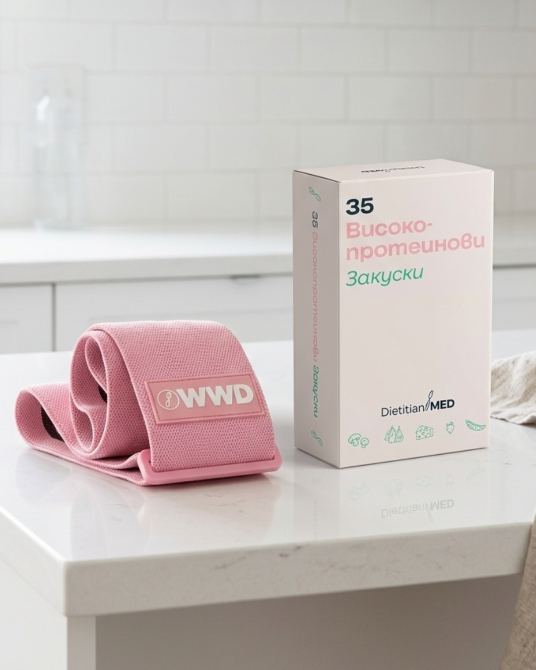 Рецептите са създадени така, че да ти осигурят стабилна енергия и ситост през първата част на деня, а ластикът ти дава възможност да добавиш бърза и ефективна тренировка у дома или в движение.